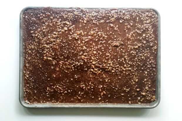 Una vez que la torta al horno, helada y enfriada, cortar la torta en tamaños deseados. Luego, servir las rebanadas de pastel. (Si lo desea, también puede servir el pastel enfriado caliente en vez de, por ejemplo, la torta caliente sería delicioso acompañado con helado de vainilla.) Tomar un bocado y disfrutar del sabor celestial de pastel de hoja de bisabuela Judy Texas.