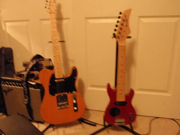 No invertir en una guitarra eléctrica de juguete (uno se muestra a continuación). No son vale la pena tener y no permanecerá en sintonía para más de 5 minutos. Tengo uno en el 1er grado, y ahora estoy feliz de que yo puedo pasarlo a mis hermanos. Guitarras aunque puede obtener muy caro (ver "Fender Strat Standard U.S.A.) no tienes que gastar casi tanto. La primera guitarra que se muestra es un Dean evo xm, y suena excelente para su precio. Vende nuevo por $130. Recibí como un regalo de mi abuelo, que lo compró usado por $50. Es mi guitarra favorita de seconed y mi favorita que eléctricos. El siguiente es mi tele squier de fender. Nueva por $180. Consegui esto de craigslist para $100, y después de comprarlo me di cuenta de que el dueño anterior había conseguido un trabajo de"acción" en él. Estos pueden costar hasta $60, así que tengo una guitarra de $200 + $ 100. Siempre Compruebe la acción y ver si las cuerdas buzz cuando usted les rasgueo. Busque arañazos y abolladuras, que disminuyen el valor de la guitarra. Conecta la guitarra a un amplificador y escuchar para saber si hay ruidos que no deberían estar allí. Asegúrese de que las camionetas de trabajo, así como el interruptor de palanca y los botones de volumen y tono. La investigación siempre una guitarra antes de ir a verlo, así que usted sabe cuánto el precio de venta es. Recuerda que para tocar una guitarra eléctrica, necesitas un amplificador y un cable.