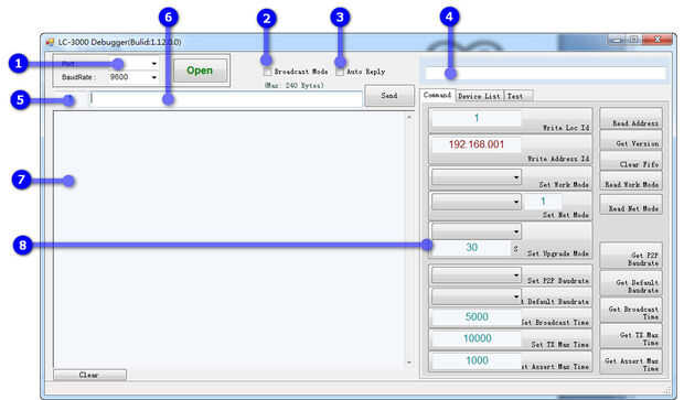 La "velocidad en baudios predeterminada" es por defecto 9600bps, si su MCU no es labor de 9600bps, por favor baudios LC-3000 al mismo como su UART MCU baudios.