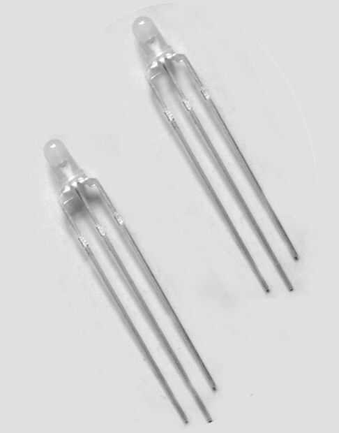 Estos LEDs especiales combinan varios LEDs en un solo paquete. Estos LEDs tienen un común ánodo o un cátodo común. Cátodos comunes son más comunes. Puede ser difundidos o waterclear. Más Bi-LED tienen LEDs rojo y verde pero están disponibles en diferentes combinaciones de color. Tri-LED es la misma cosa pero con tres LED construido en él. No hay mucho que decir acerca de ellos. Son bastante simples a menos que planee iluminarlo a la vez. Entonces las cosas comienzan a complicarse más. Usted necesita encontrar la caída de tensión individual de cada LED y a menudo se pueden encontrar los detalles en la ficha técnica. Entonces usted necesita para calcular el valor de la resistencia y explicaré más adelante. Para encontrar la hoja de datos pregunte en el mostrador en tienda de electrónica en la que la compraste. Si reciclas una de una placa de circuito, el experimento. Google es también amigo de You ' r.