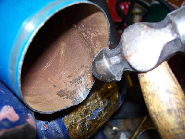 Usar el martillo de bola (o cualquier martillo) y explosión hacia fuera Dónde está la línea. Esto hará que un caño. (puede tardar un poco trabajo para hacerlo bien pero mientras está allí, colada será más fácil)