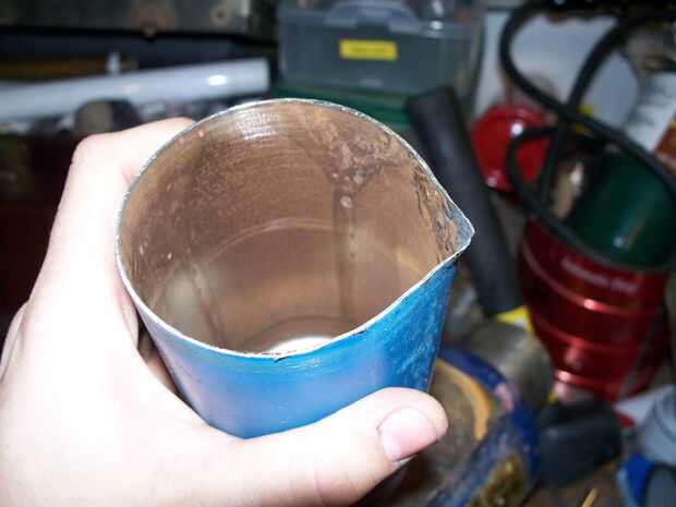 Cuando el metal se pone rojo, dóblela por la mitad para hacer un ángulo agudo pero no totalmente por la mitad. (ver imagen)