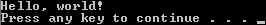 pausa. Ahora por fin, haya terminado, guárdalo y haga doble clic en el icono del archivo por lotes. Se debe abrir una ventana CMD, imprime "Hola, mundo!" en la ventana y dice "presione cualquier tecla para continuar... ", después de pulsar cualquier tecla la ventana se cerrará. Felicidades, usted acaba de hacer su primer archivo por lotes!
