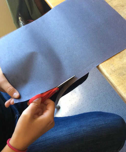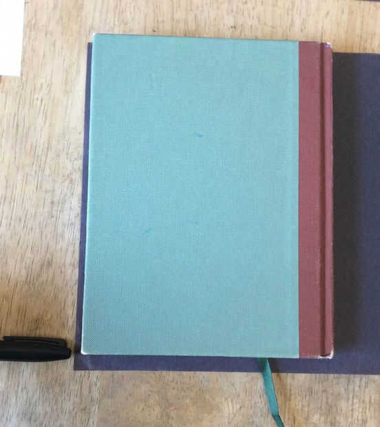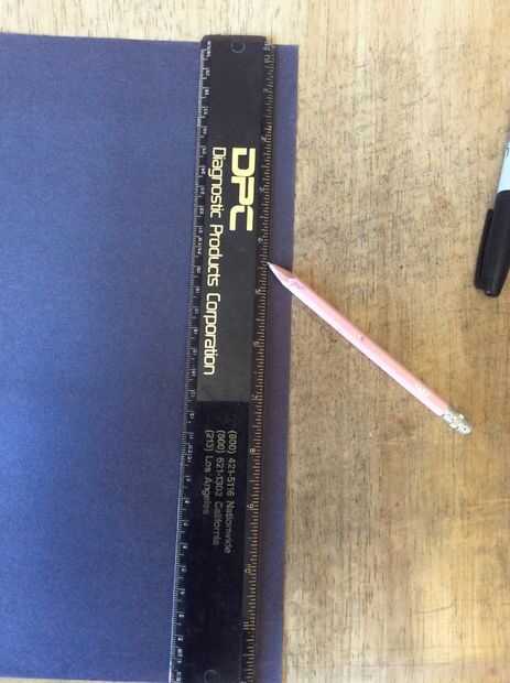 Dependiendo de cómo de grande/pequeño es tu libro, vas a tener que recortar hasta tamaño o, cinta otro pedazo de papel al que ya tienes y luego cortar a la medida. Mina era un poco más pequeño que el ancho, así que tuve que recortar aproximadamente media pulgada de la parte inferior.