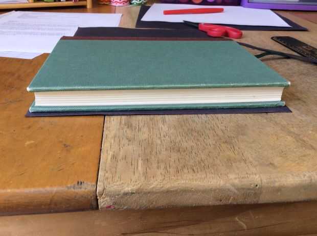 Yo tuve que utilizar otro pedazo de papel negro y había recortada al tamaño también, así que puede cubrir totalmente el libro. Una sola pieza no fue suficiente.