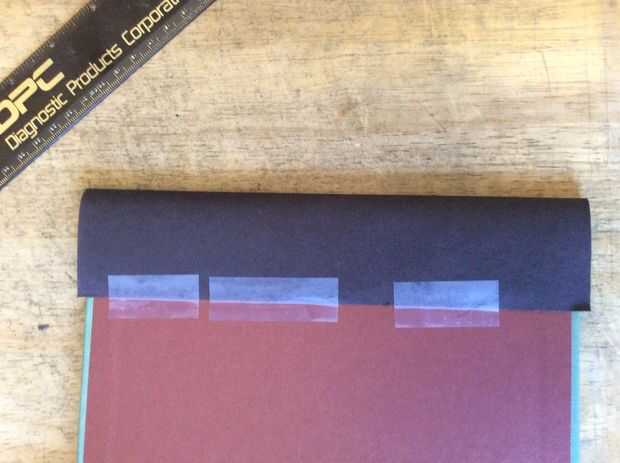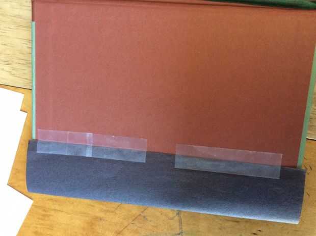 No podía estirar un pedazo de papel a través de la parte posterior de todo el libro, por lo que el otro pedazo de papel recortan, grabó al otro lado del libro. Ver el siguiente paso para sujetar papeles.