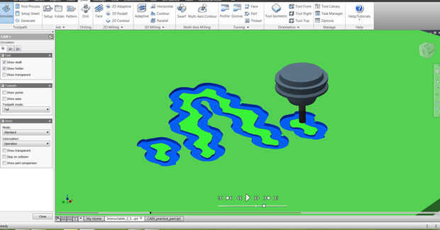 7. Haga clic en configuración en el árbol de la característica de CAM y haga clic en simular en la cinta anterior. Jugar a la simulación.