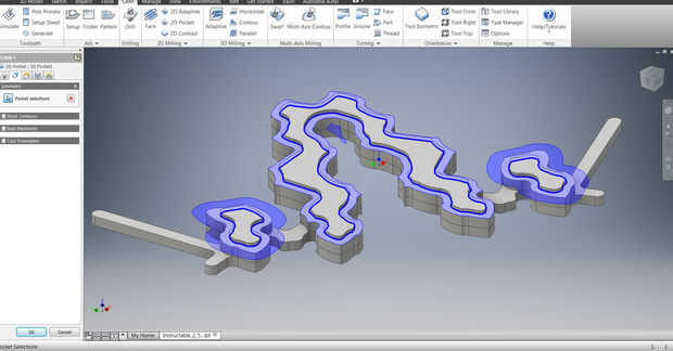 1. Haga clic en Pocket 2D en la cinta superior.