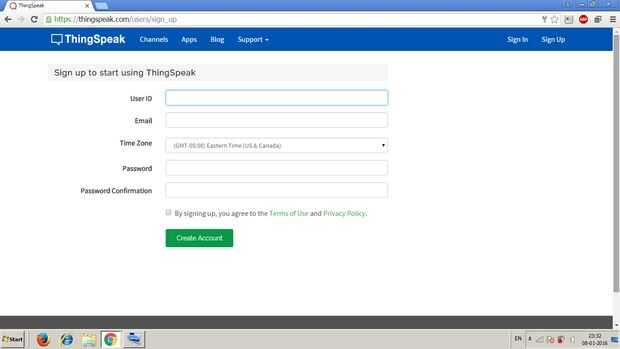 Si no has hecho una cuenta en Thingspeak hacer uno ahora.