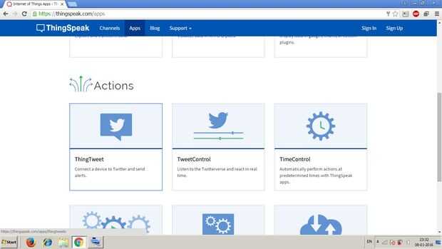 Después de hacer una cuenta en Thingspeak ir a aplicaciones > ThingTweet.