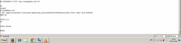 Tan pronto como usted envíe el comando anterior iniciar presionando el enter(return) en intervalos de aproximadamente 1 segundo. Después de algún tiempo, Enviar OK,+ IPD, 0, 1:1 y OK se devolverá lo que significa que el tweet se ha enviado.