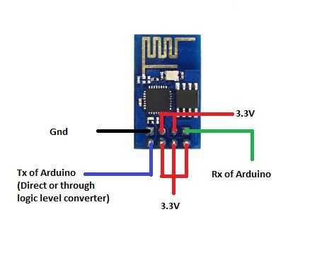 (Nota que en algunas versiones ESP Rx deben conectarse a Arduino Tx y Tx ESP debe conectaron Rx del Arduino).