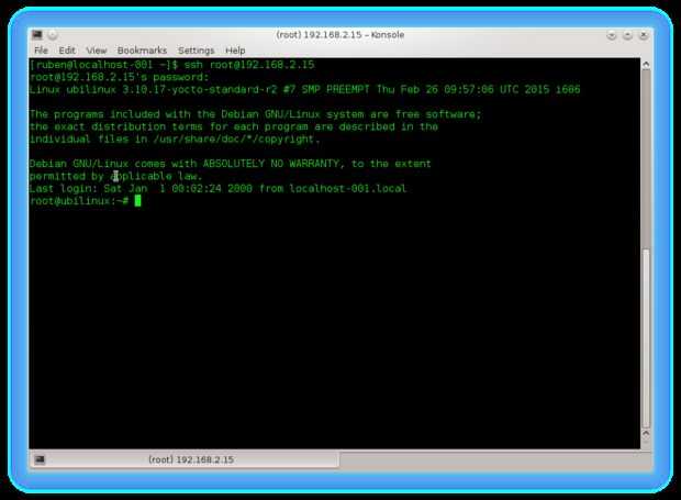 Ahora podrá conectarse a su Edison de Intel a través de Ssh, escribiendo: