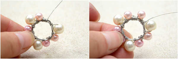 6 º, añadir otro grupos de uno 8mm y dos perlas de 6mm alrededor del aro;