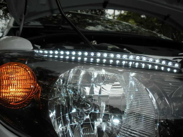 Serpiente la tira del LED a través de la bahía del motor para que ahora se puede montar con la cinta de doble cara.