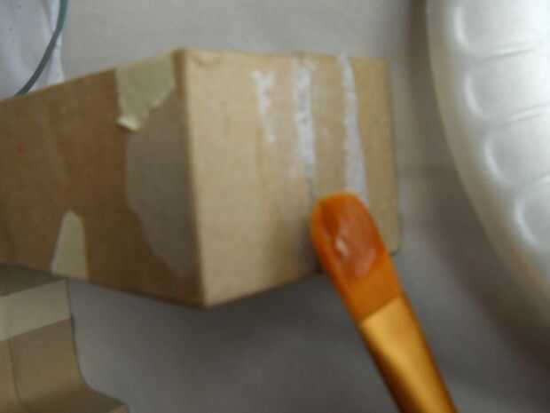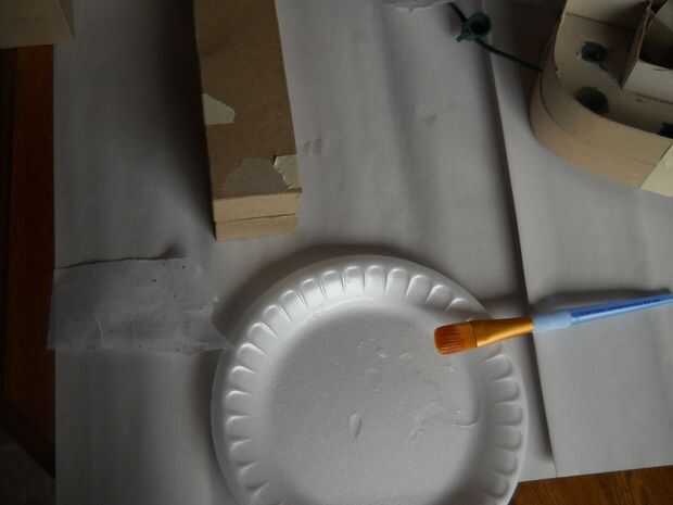 Para esto lo trataron casi como papel maché. Usé pegamento de Elmer y pintado en la costura. Luego coloca el papel en el pegamento y poner más pegamento en la parte superior.