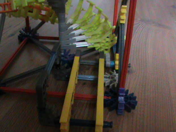 ¡ Hola! Aquí es un elemento de mi máquina de la bola de K'nex Freestyle! Fue ofrecido en ruta 3 donde trajo la pelota al piso blanco en la parte inferior. Lo creé porque realmente quería encontrar un uso para las ruedas! Una desventaja de esto fue qu