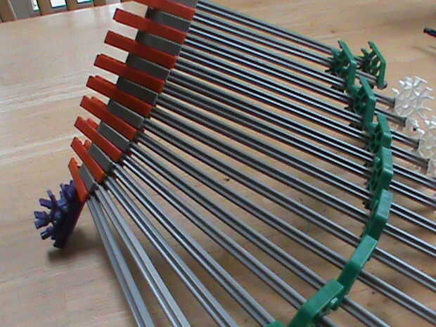 este es un elemento de la máquina de bolas KVGCuando la bola pasa a archimedes vueltas de tornilloPaso 1: los soportes hacer que estosPaso 2: el camino hacer que estosPaso 3: el tornillo de Arquímedes hacer que estosConecte las barras verdes a los co