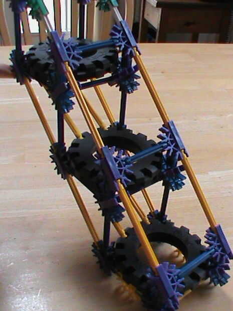 ¡ Hola! Aquí es un elemento de mi máquina de la bola de K'nex Freestyle! Fue ofrecido en ruta 3 donde trajo la pelota al piso blanco en la parte inferior. Lo creé porque realmente quería encontrar un uso para las ruedas! Una desventaja de esto fue qu