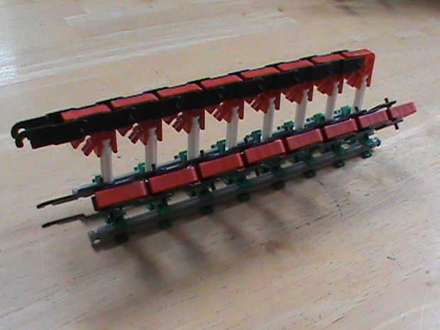 este es un elemento de la máquina de bolas KVGCuando la bola pasa a archimedes vueltas de tornilloPaso 1: los soportes hacer que estosPaso 2: el camino hacer que estosPaso 3: el tornillo de Arquímedes hacer que estosConecte las barras verdes a los co