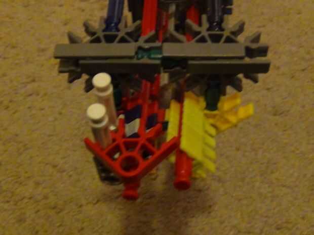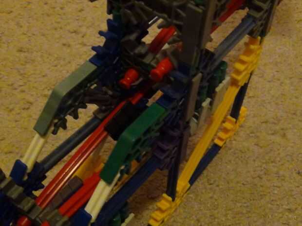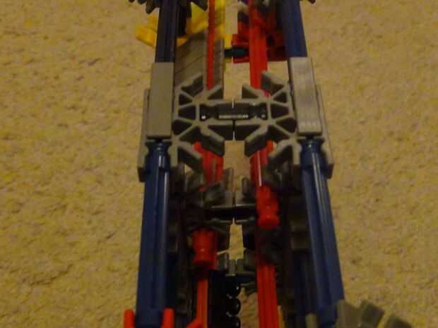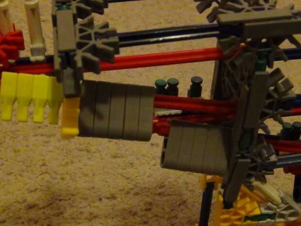 Este elemento tiene canicas moviéndose a lo largo de un camino que se expande hasta canicas caen a través de, la tierra por otro camino de expansión y así sucesivamente. ADVERTENCIA: Este elemento es extremadamente difícil de establecer. Barras rojas que doblan abajo son dificiles de conseguir permanecer en el lugar. Flexi azul barras pueden utilizarse en algunas zonas si es más fácil de hacer.