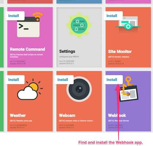 Paso 2: Acceder a su Prota e instalar la aplicación webhook.