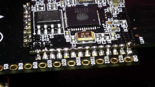 Examinar la soldadura SMD con una lupa para empalmes secos. Soldadura exceso está bien mientras no desborde a los pines vecinos. Una cámara del smartphone con él es aumento función trabaja bien.