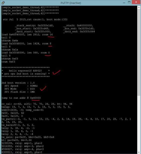 el pasador EN ESP32 es alta con un resistor de 10K y luego a tierra mediante interruptor de botón para reiniciar la ESP32 si afirmó. Uso masilla con el valor de 115200 8 N 1 y sin control de flujo, la misma salida se adquieren según el blog de martin, solo reinicializando el ESP32 usando el botón recién agregado. Ver imagen para los detalles.