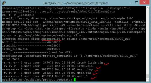 update2 rápido: después de fijar algunas dependencias rotas, finalmente el *.bin se compilan con éxito. revisa las imágenes. Continuación, debe averiguar lo que es la funcionalidad de *.bin compilado de la siempre "project_template". Entonces decide si se va a subir a la ESP32 o de otra manera. Todavía encontrar una forma de "backup" fuera de la caja *.bin en el ESP32. así como un seguro para recuperarse de errores.