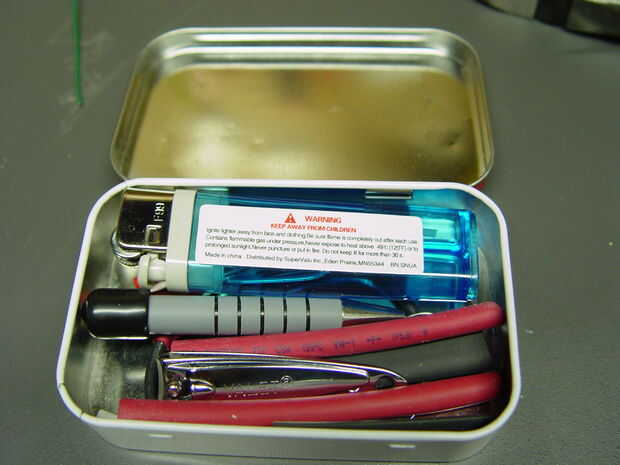 este es un kit que permitirá hacer soldar muchas tareas en el campo, cuesta alrededor de $8,00, y cabe en una lata Altoids! He usado este mismo conjunto de cosas hace años y fue inspirado para compartir basado en un reciente instructable sobre soldadura (una excepcional). Este instructable va un paso más en la construcción de una mano portable, soldadura dispensador y montaje de todas las herramientas que necesita para hacer las cosas en el campo.