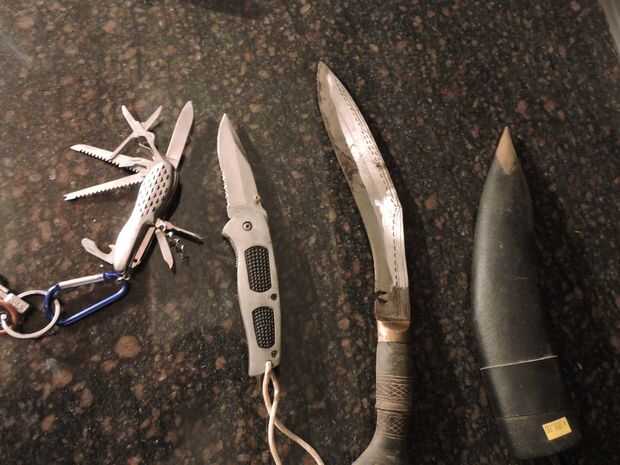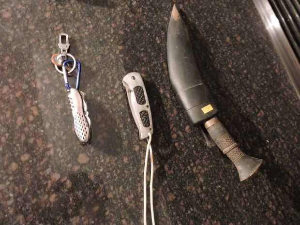 Normalmente llevo tres cuchillos junto a mí en cada cuchillo de hoja de trek-uno primario 9 pulgadas para trabajo pesado, un cuchillo plegable secundario que utilizo para el procesamiento de juego, cuerda de corte y la tela y otras tareas similares y un derivado de la navaja suiza que tiene un conjunto de herramientas útiles.