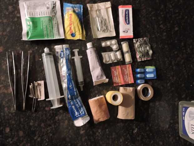 Usted encontrará muchas variaciones y repeticiones de botiquines de primeros auxilios tener más cosas pero encontré esto bastante exhaustivo y cubriendo todas las bases.