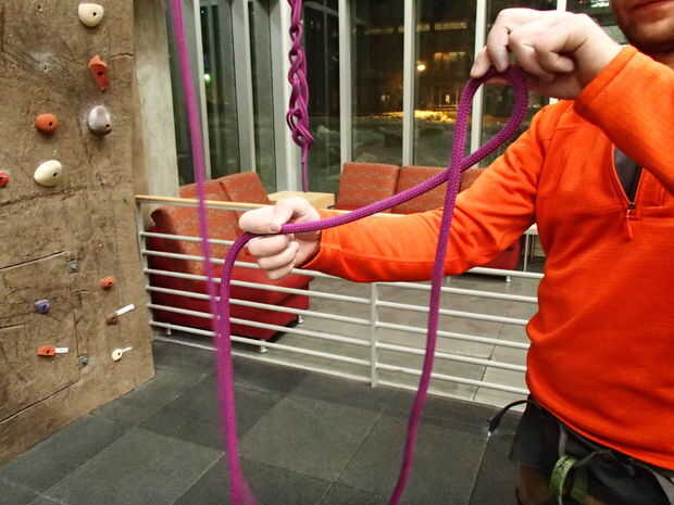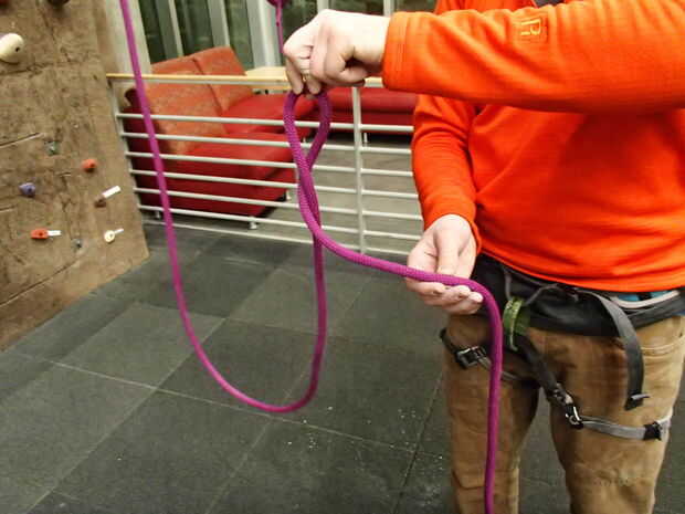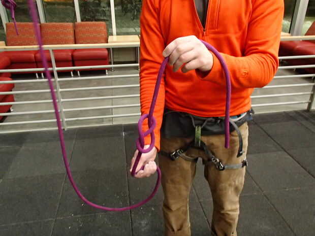 B. crear un bucle en la cuerda para comenzar la figura ocho.