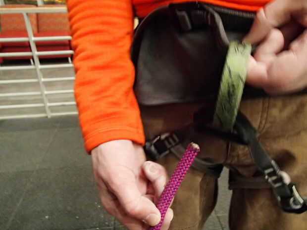 Guía un escalador a seguir por el nudo de ocho (2 / 5 paso)