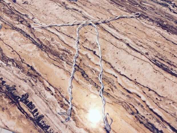 Hacer los brazos de la misma manera como la primera pieza del esqueleto. Una longitud doble del alambre de la medida, hacer lazos pequeños para las manos y tuerza el alambre para que sea más fuerte. Luego coloque los brazos al cuerpo sólo envolviéndolos en algunos hilos más. Es más fácil envolver el alambre si la haces muy larga. Usted puede cortar los extremos sueltos luego.