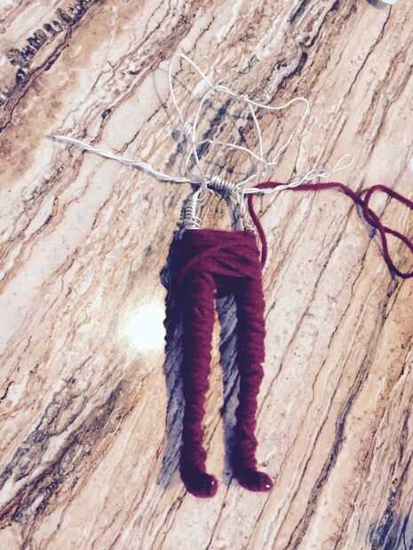 Cuando el esqueleto se realiza, es hora de empezar a envolver todo en hilo! Comienzan en los pies y a envolver. Para colocar el hilo, mantener en su lugar, luego Envuelva un par de bucles de hilo alrededor de él. Los dedos del pie del esqueleto de alambre son un poco difíciles de envolver pero hay una manera de hacerlo. A manojo de algunos de los hilos hacia arriba por lo que recorre el cable, manténgalo allí, luego envuelva hilo alrededor de él para mantenerlo en su lugar. También, puede usted cortar la cadena, luego envuélvalo alrededor del dedo del pie. Plasmar las piernas algunos envolviendo el hilado más alrededor de los muslos y los pies, manteniendo las rodillas bastante flaco.