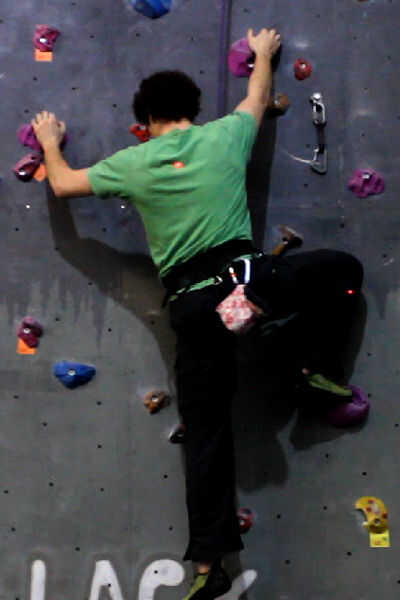 - Como el nuevo escalador sube, el escalador de fantasma se proyectará en la misma pared. Cuando el escalador supera el fantasma, se reproducirá un sonido de alerta positivo. Cuando el espíritu supera a la del escalador, se reproducirá un sonido más sombrío. Del mismo modo, al final de la ruta, se reproducirá sonidos diferentes dependiendo de si el escalador o el espíritu alcanza la cima de la ruta primero. Durante la carrera, el LED amarillo se encenderá mientras el trepador está por delante el espíritu.