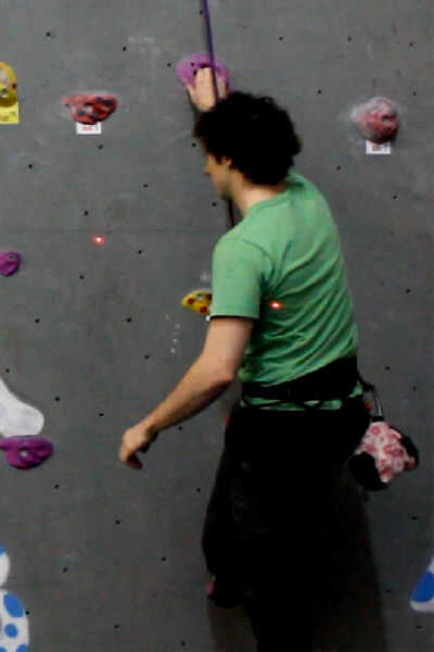 - Pulsa el botón 1 para jugar la ruta grabada detrás vía la torreta servo, proyectando el escalador"fantasma" en la pared como un punto de láser.