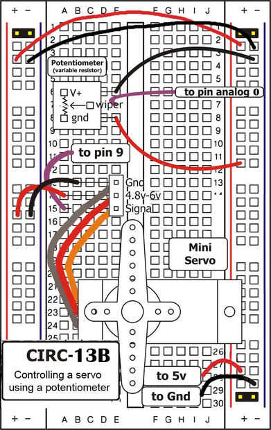 Este laboratorio utiliza el potenciómetro para controlar la posición del servo.