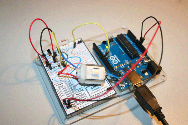 Las patas del transistor no están etiquetadas, pero si usas el diseño protoboard solo colocarlo en la misma dirección que su dibujado.