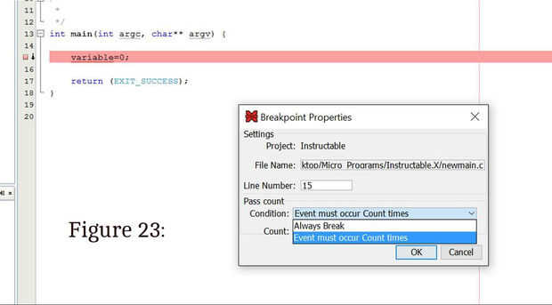 Para el código que uso del bucle for o algún método de cuenta para realizar análisis de una variable o de la matriz y las opciones avanzadas para un punto de interrupción puede ser muy útil. Puede permitir al usuario establecer cuantas veces el programa debe pasar por el punto de quiebre antes de detenerse. Esto es muy útil en la determinación de un índice específico en un arreglo de discos.