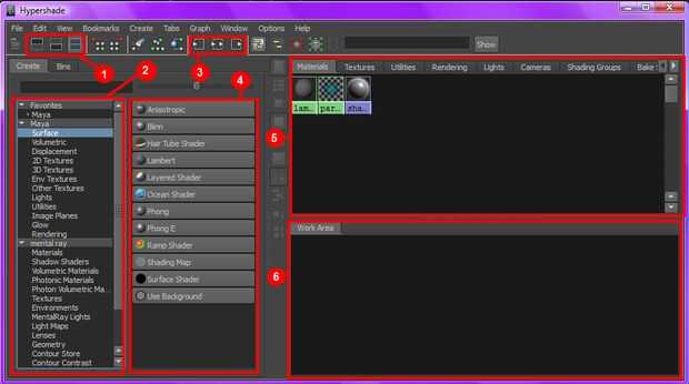 Esta es la ventana que utilizas para aplicar texturas, uso de diferentes materiales, etc.. Hypershade es para más que sólo aplicando materiales o colores, puede hacer uso de la utilidad de nodos para crear tipo de 'programas' que puede gobernar cómo se comportará el objeto al que se somete a alguna transformación o es afectado por otro objeto.