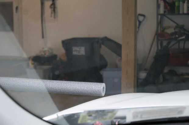 Alinear el coche así parabrisas es incluso con el gancho y la espuma aislante.