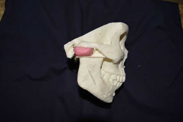 La auto polimerización de la resina de metacrilato de metilo es mezclado en la proporción correcta y colocado entre los planos de corte y contorneada con un instrumento cortante (cuchillo).