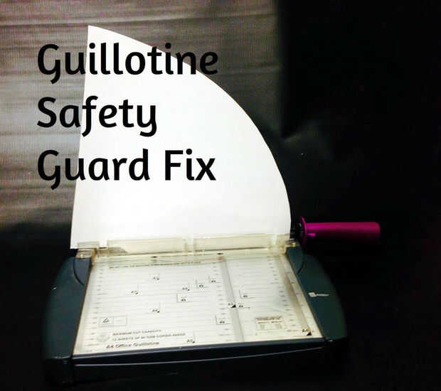 Así que, como director, cuando vi los fabricantes utilizando una guillotina con un guardia de seguridad rotos, tomé acción. Los guardias de seguridad de esas guillotinas pueden ser vulnerables a la rotura, porque se extienden tan lejos de que la base y éste habían sido desprendió en algún lugar del camino. La guillotina en su estado existente no era peligroso siempre y cuando se usaba correctamente - una mano en la manija, el otro material - sino un nuevo protector de sujeción garantiza la seguridad de cualquier usuario inexperto, niño curioso u otro usuario del espacio.
