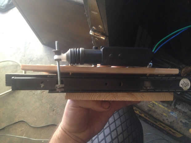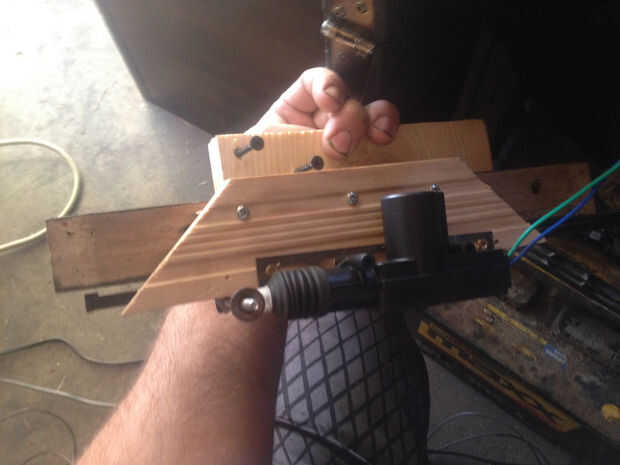 Por lo tanto originalmente pasé largas horas buscando por internet ejemplos de cómo otras personas guillotina allí con la esperanza de encontrar una manera para sacar la hoja y colocar en cola completamente acobardado pero no pudo encontrar uno que lo habían hecho. Tomó esto como un reto y me fui a trabajar y después de un montón de R & D finalmente surgió con un diseño que trabajó lamentablemente dos días antes de la fiesta de Halloween que necesitaba tener terminado para mi actuador principal que se quemó para arriba y no pude conseguir el reemplazo en tiempo. Así que tuve que simplificar y este es el compromiso que hice al final. Tomé varias placas de desecho que tenía puesta alrededor de una corredera y un actuador de la cerradura de la puerta y atornillado a todos juntos para que al final me pude enganche la cuerda alrededor del final de la placa principal y el actuador Deslice el cajón hacia fuera empuja la cuerda caer. Con este diseño todavía tendría que restablecerse manualmente cada vez pero por lo menos la escena podría jugar sin tripulación y que iba a tener que ser lo suficientemente bueno para este año. El año que viene sin embargo sería completamente animatronic y se ejecutará totalmente en su propio. Voy a tener que publicar algunas actualizaciones una vez lo ha hecho explicando las modificaciones que voy haciendo.