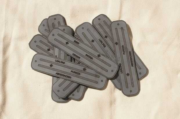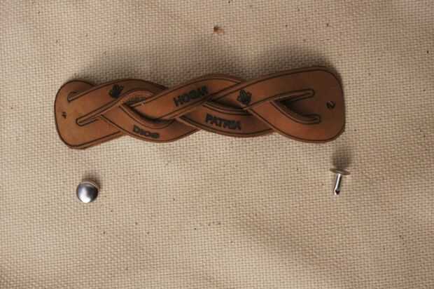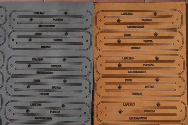 1. con baja potencia graba sobre el cuero las palabras Dios, Patria y Hogar.