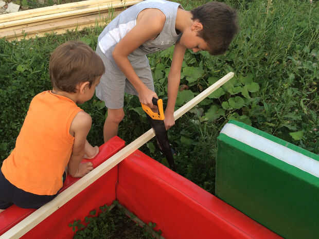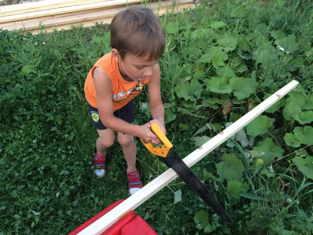 Comenzamos con la construcción de una esqueleto. Queremos que la casa estaba parada en la parte superior la pluma. Por lo tanto, la longitud de nuestra construcción = 2 m. Mida y Sierre.