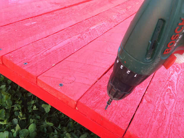 Cuando la pintura esté seca, fijar las placas con tornillos de 35 mm a la base de la construcción