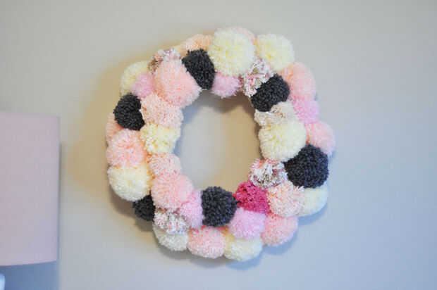 Mi última creación en el hilado es esta corona de bolas adorable hilado, hecha con el hilo de mi stash de lana.Soy un acaparador de hilado de la recuperación y recientemente cayó en amor con la creación de guirnaldas utilizando hilo para disminuir mi